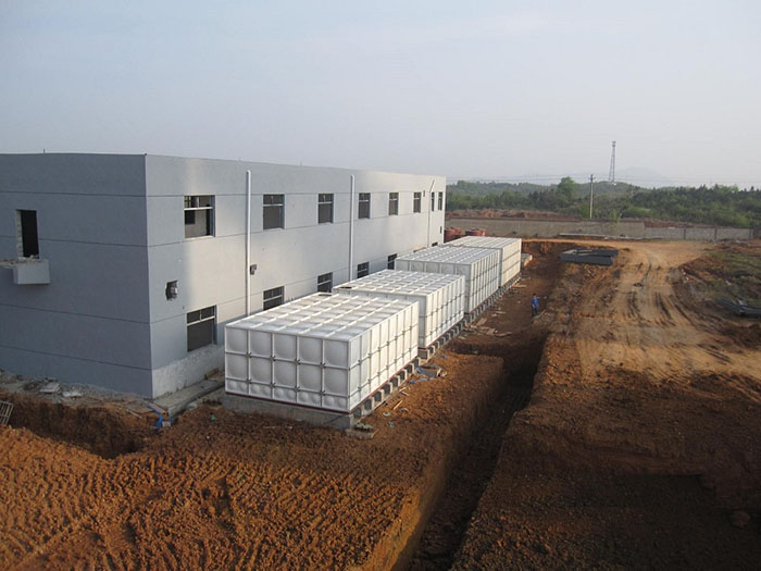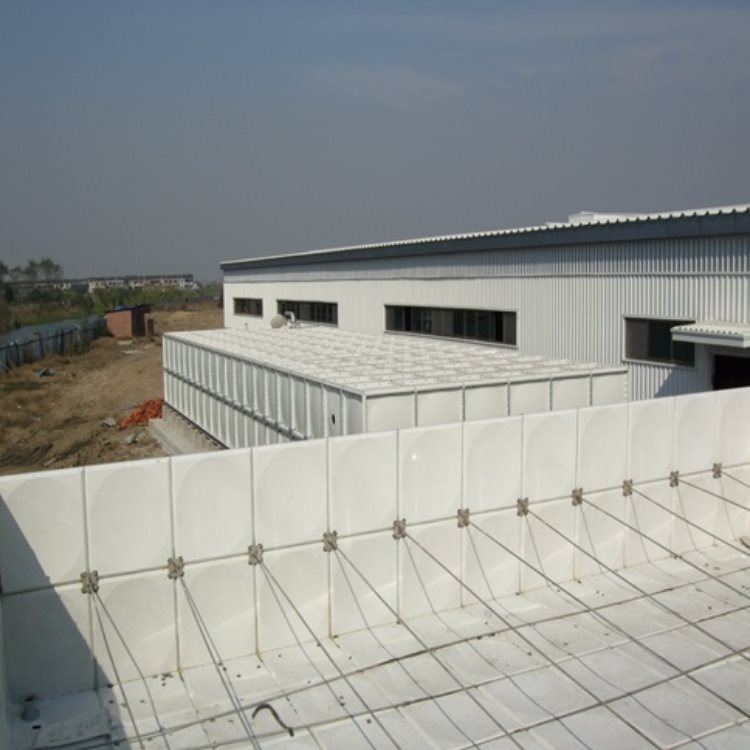 玻璃钢水箱是由SMC模压单板、密封材料、金属结构件及配管系统组合拼装而成。可以根据用户需要组装1-1000立方的水箱。模压单板是采用不饱和树脂生产的SMC片材,经高温、高压、机械压制而成。在制造工艺上,采取机压成型的制作方法。增加了抗震、抗冲击的强度、克服了手糊制品强度不均匀的缺陷,提高了耐压强度和使用寿命;在外型设计上,板块中部呈凹陷弧度,提高了水箱的承压能力,同时板块四周没有45度和90度的凸缘,组装时不用边角连接件,更具有柔韧性和灵活性,水箱密封是采用专业的定型产品-密封带,该密封带、耐水、弹性大、变形小,使用寿命长。